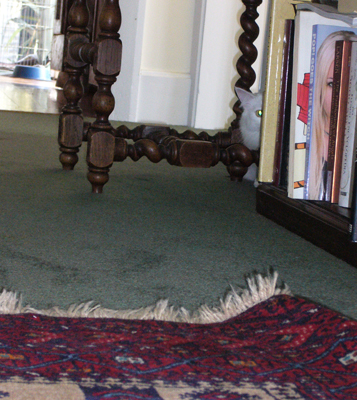He was brought home by Noo and he was so wild, and his coat so matted, that for the first of the three months I tried to tame him I never realised how desperately starved he was. Neighbourhood enquiries told me that he lived on the river bank and it turned out he had made a rat hole his home. I heard that there had once been signs up advertising a lost cat but all attempts to find his original owners failed.