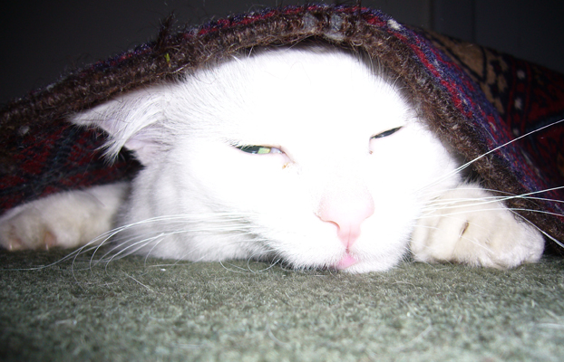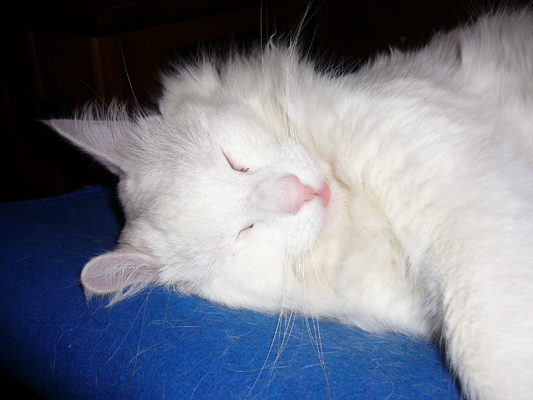 Finally, Haku chose to make his home with us and a desperate vetinary effort by one of my dear friends saved his life. Under all that matted fur he was injured and absessed and painfully thin.